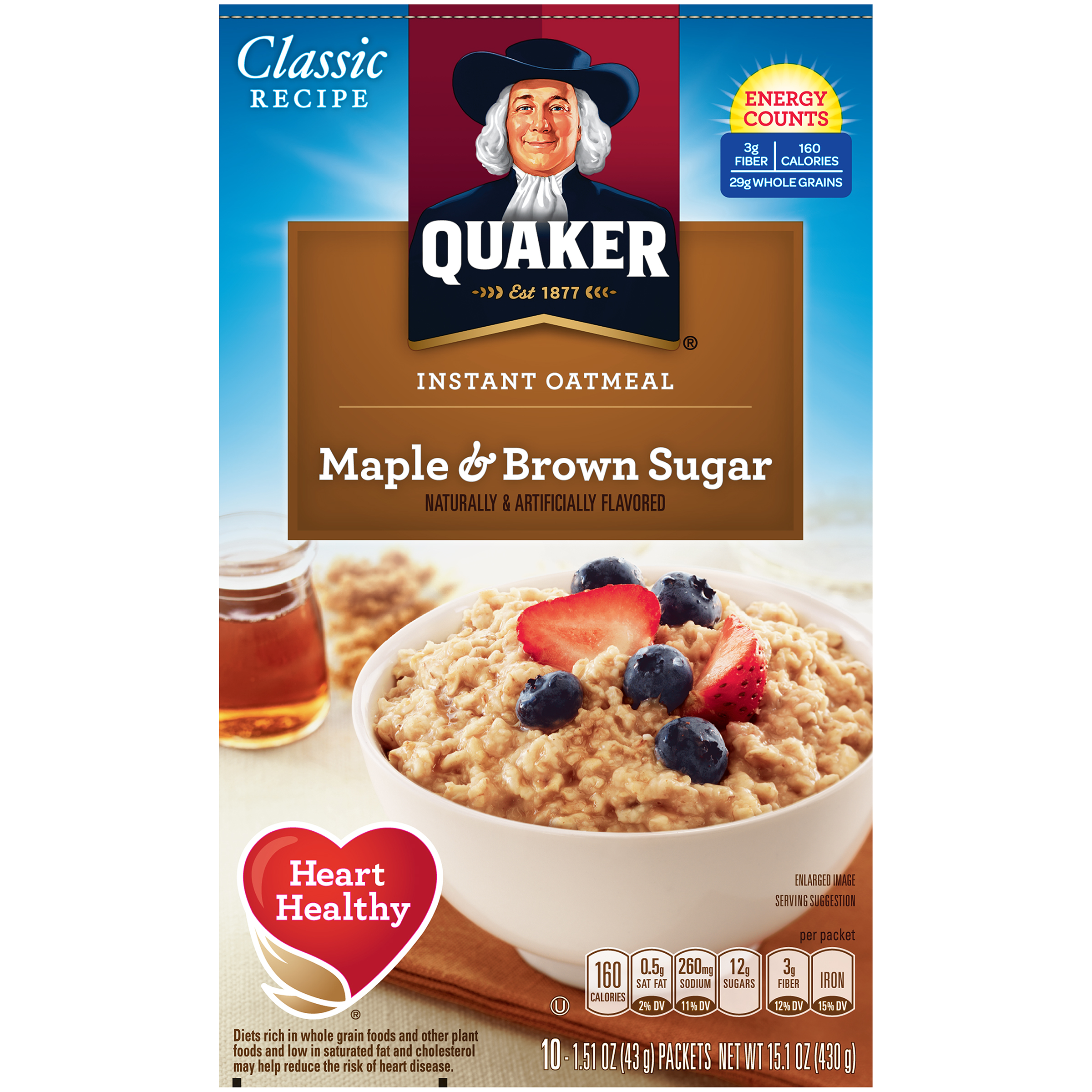 Calories from Fat 179 113 Daily Value. There are 160 calories in 1 packet 15 oz of Meijer Instant Oatmeal Maple Brown Sugar. How much fat is in Maple Brown Sugar Instant Oatmeal.
