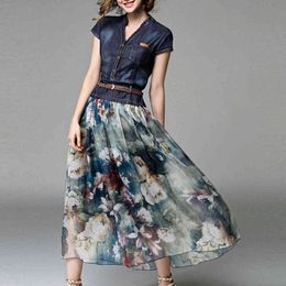 V-neck Denim Patchwork Floral Maxi Dress. Measure fully around the smallest part of your waist. Strapless patchwork denim maxi dress.